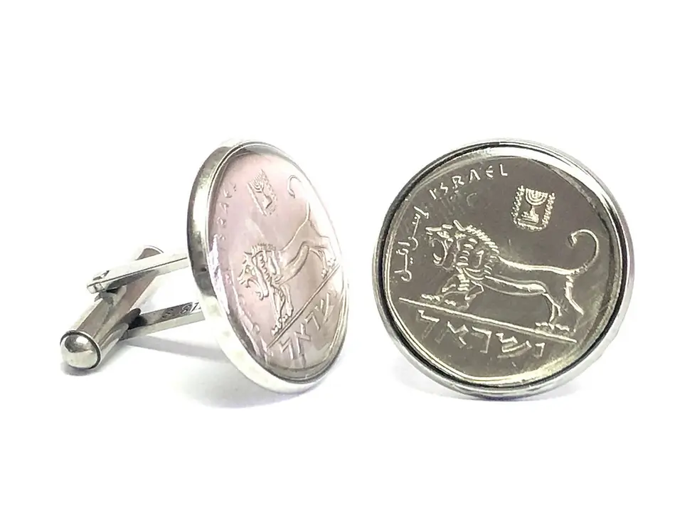 Israel coin cufflinks lion 1/2 sheqel חפתים למטבעות
